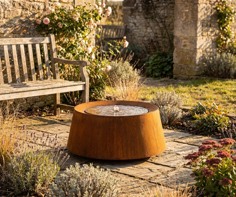 Breng de mystiek van een kratermeer naar je eigen achtertuin. De Magma watertafel is niet zomaar een waterornament; het is een architectonisch statement. Dankzij het unieke conische design en het robuuste cortenstaal vormt deze tafel een natuurlijk rustpunt dat met de jaren alleen maar mooier wordt.