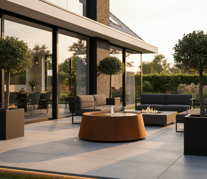 Tip: Combineer deze watertafel met strakke cortenstalen borderranden om eenheid en rust in je tuinontwerp te creëren. Een duurzame investering waar je decennia plezier van hebt!