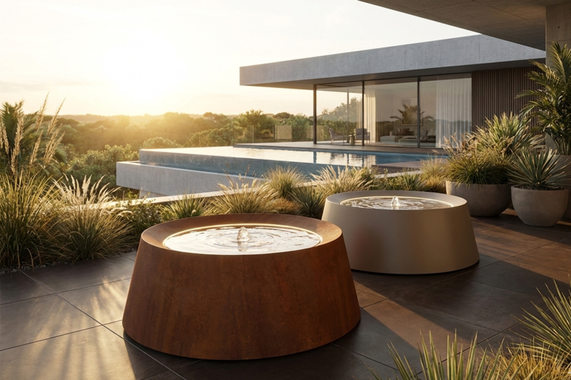 Magische avonden: De geïntegreerde ledverlichting verlicht de fontein van onderaf, wat zorgt voor een betoverend schouwspel zodra de zon ondergaat.
