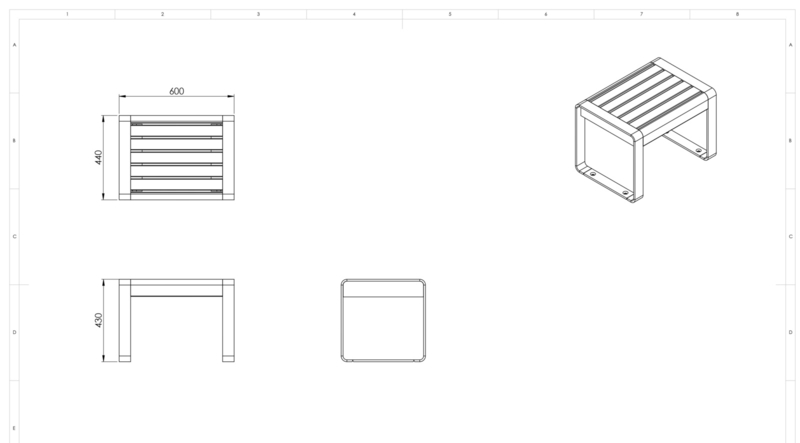 De eenpersoons zitbank is eenvoudig te plaatsen op een fundering met behulp van een 4-tal bouten per voet (zie ook het productblad op afbeelding 2).